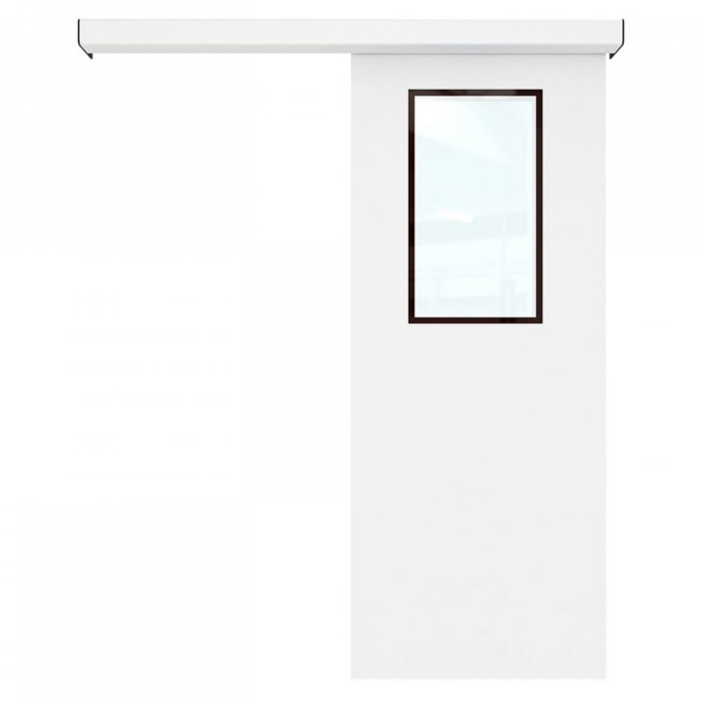 Дверь раздвижная для чистых помещений, остекленная однопольная. Применяется для установки в чистых помещениях для медицинских и фармацевтических учреждений.